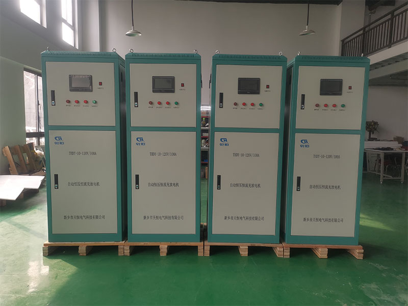 產品介紹:  一、設備概述  自動恒流充放電機主要適用于各種酸性、堿性蓄電池的充放電;采用當今國際***的微機技術,以DSP數字處理器為核心,通過優化的程序和模塊化的結構實現對動力蓄電池的充放電控制。該產品具有多種充電模式,安全可靠,穩定精度高,電壓適應范圍寬,體積小等特點,適用于各型機車蓄電池恒壓恒流充電,可對電池組整體充電,也可對單節蓄電池充電。配有LCD液晶顯示屏,全中文顯示;不僅具有完好的人機界面,操作方便,顯示清晰易懂,而且功能強大,集充電、放電、循環充放多種工作模式于一體。充放電機具備記憶功能,能夠記錄蓄電池充放電時間等過程數據。且可隨時調取記錄。  功能要求采用電壓法、時間法、容量法等多種方法綜合性地判斷充放電工作的完成,并自動關機;具有自動檢測、延時啟動、軟啟動、軟關斷的功能;具有開路、接反、過載、過熱、電源缺相等的故障保護和報警功能;具有自動翻檔功能;液晶屏實時顯示工作模式和各個充放電參數及故障信息;高亮度LED指示設備的運行狀態和故障報警充電中途充電連接線脫落自動關機;對于設置的參數,系統可長久記憶,停電也不丟失。可在充、放電工作過程中對所有的參數進行在線設置或修改。應具有自動記錄充放電全過程中單節蓄電池的電壓、電流曲線功能,并能進行存儲、傳輸和打印。本產品適用于各種酸性、堿性蓄電池的充放電;采用微機技術,配有LCD液晶顯示屏,全中文顯示;不僅具有完好的人機界面,操作方便,顯示清晰易懂,而且功能強大,集充電、放電、循環充放多種工作模式于一體。具有手動和自動兩種控制方式。  放電工作模式:我司生產的自動恒流充放電機采用恒流控制方式進行工作;在對蓄電池的放電全過程中,放電電流保持不變。  二、主要技術參數輸入  鐵路用充放電機常用規格  訂貨須知:  請注明型號,可按客戶要求電壓電流生產訂制。