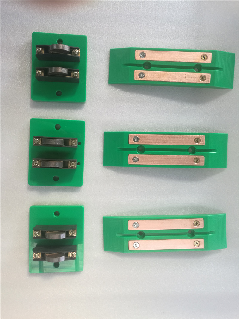 產品介紹:  THSB(SK)系列刷板刷塊產品簡介:該產品基板采用進口UPE(超高分子聚乙烯),該材料具有耐磨、耐沖擊、耐腐蝕、自潤滑、吸收沖擊能等特性; 銅塊采用T2紫銅,因為含雜質少,具有優良的導電性、耐腐蝕性(不會出現銅綠)、堅固性(耐摩擦)。  該系列產品也可以根據客戶要求和圖紙進行加工訂制,下面是常用的規格型號:  以200A為例,尺寸圖如下:  THSK-200A刷板尺寸  THSK-200A刷塊尺寸  訂貨須知:  具體尺寸可詳細咨詢。  請注明規格型號  如有尺寸等特殊要求,可按要求進行加工訂制。