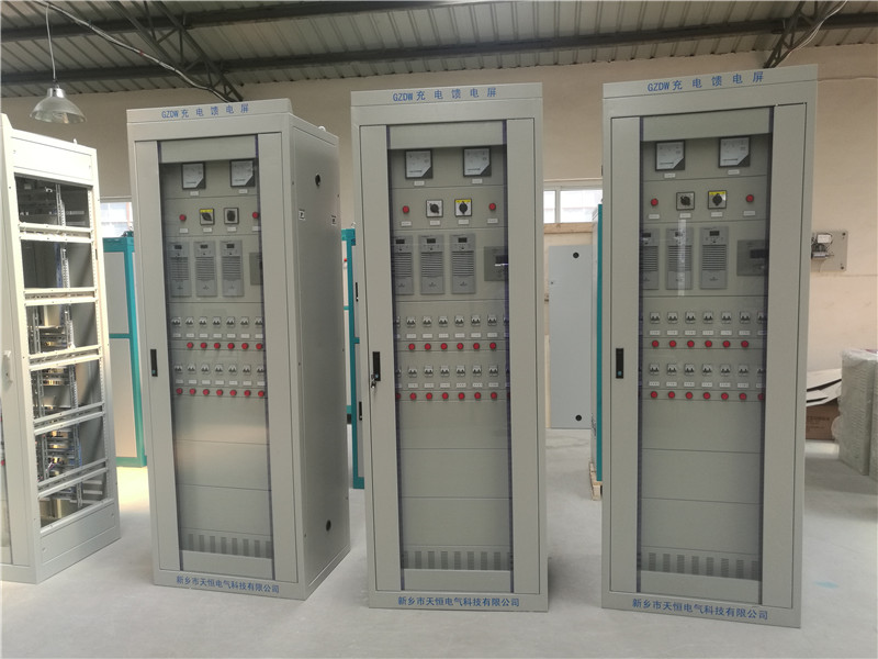 產品介紹:概述   GZDW系列高頻開關直流電源是為各種合閘開關及繼電保護裝置提供直流操作電源和作為電站控制及信號用直流電源的專用設備,廣泛應用于各類大中小型發電廠、變電站(所)、電氣化鐵路、大中型建筑及工礦企事業單位變電所、配電室以及緊急照明需要直流電源的場所。系統特點   ● 兩路交流輸入;  ●由多個獨立模塊組成,N+1備份;  ● 采用智能化管理,自主完成充電、均充電、浮充電的全部功能,并自動對蓄電池進行溫度補償,有效延長蓄電池的使用壽命;  ● 監控功能完善,高智能化,配有標準通訊接口,實現四遙功能;  ● 可選擇配置絕緣檢測儀、單只電池電壓巡檢功能;  ● 系統可以擴展其它附加功能:增加逆變器實現交流配電輸出、增加DC/DC直流轉換模塊實現DC48V(24V)輸出。GZDW系列高頻開關直流電源主要技術參數表  備注:  1、本表按220V 系統列出,對于110V系統,可按要求設計。  2、本表供參考,具體以技術協議為準。400AH以上電池一般配置電池架。系統工作原理   電源系統主要由交流配電單元、充電模塊、監控模塊、配電監控、降壓硅鏈(降壓單元)、直流饋電單元(包括合閘分路、控制分路)、絕緣監測、電池巡檢等幾大部分組成。技術指標   輸入電壓:AC 380V ±20% ;  穩壓精度:≦±0.5%  穩流精度:≦±0.5%  紋波系數:﹤±0.5%  轉換效率:≧92%  噪聲:≦55dB(關閉前后門1米處)訂貨須知   請注明型號、屏體尺寸、顏色;  配套的蓄電池容量、數量;  如有特殊要求,可按要求進行設計、加工。